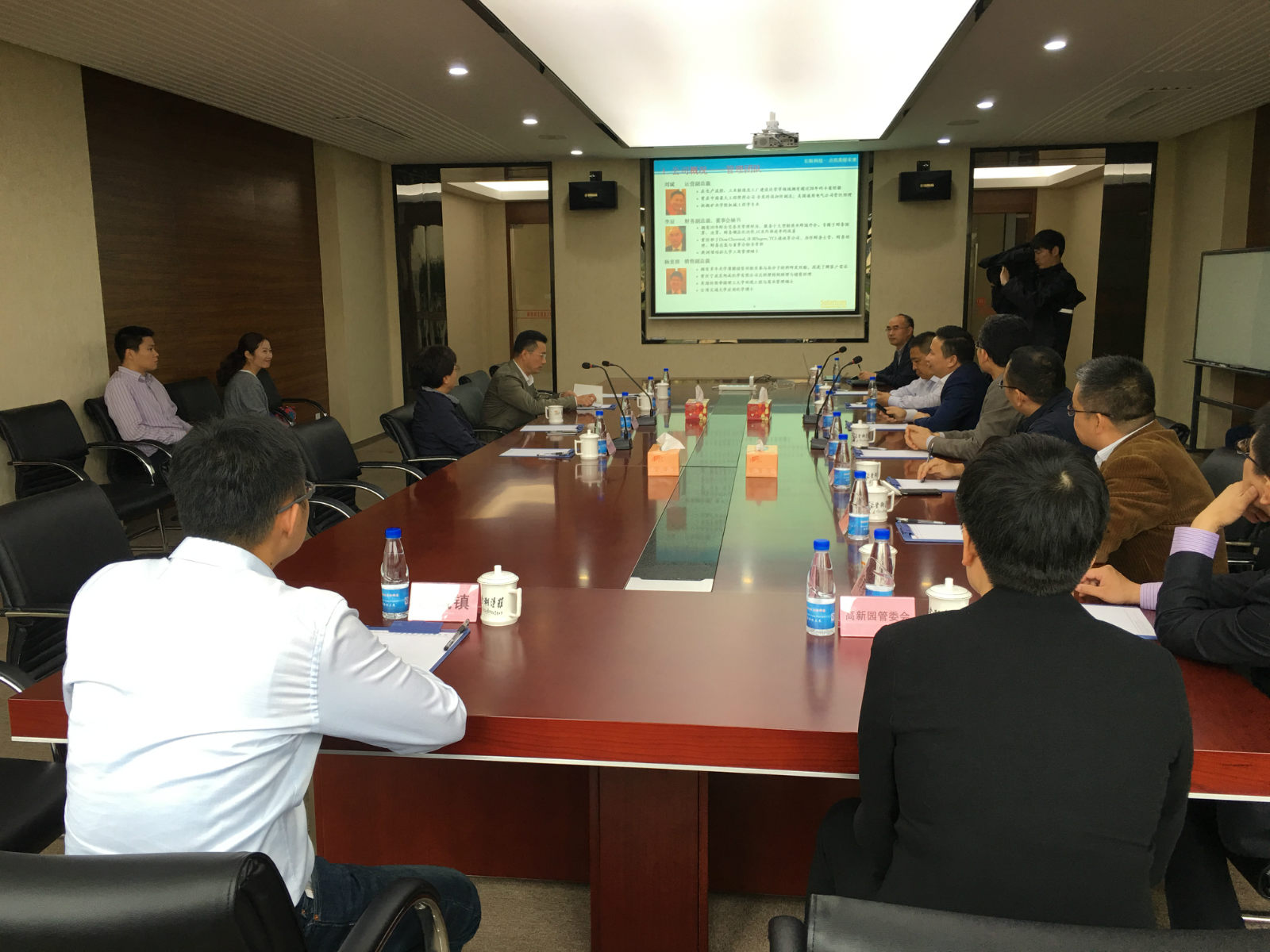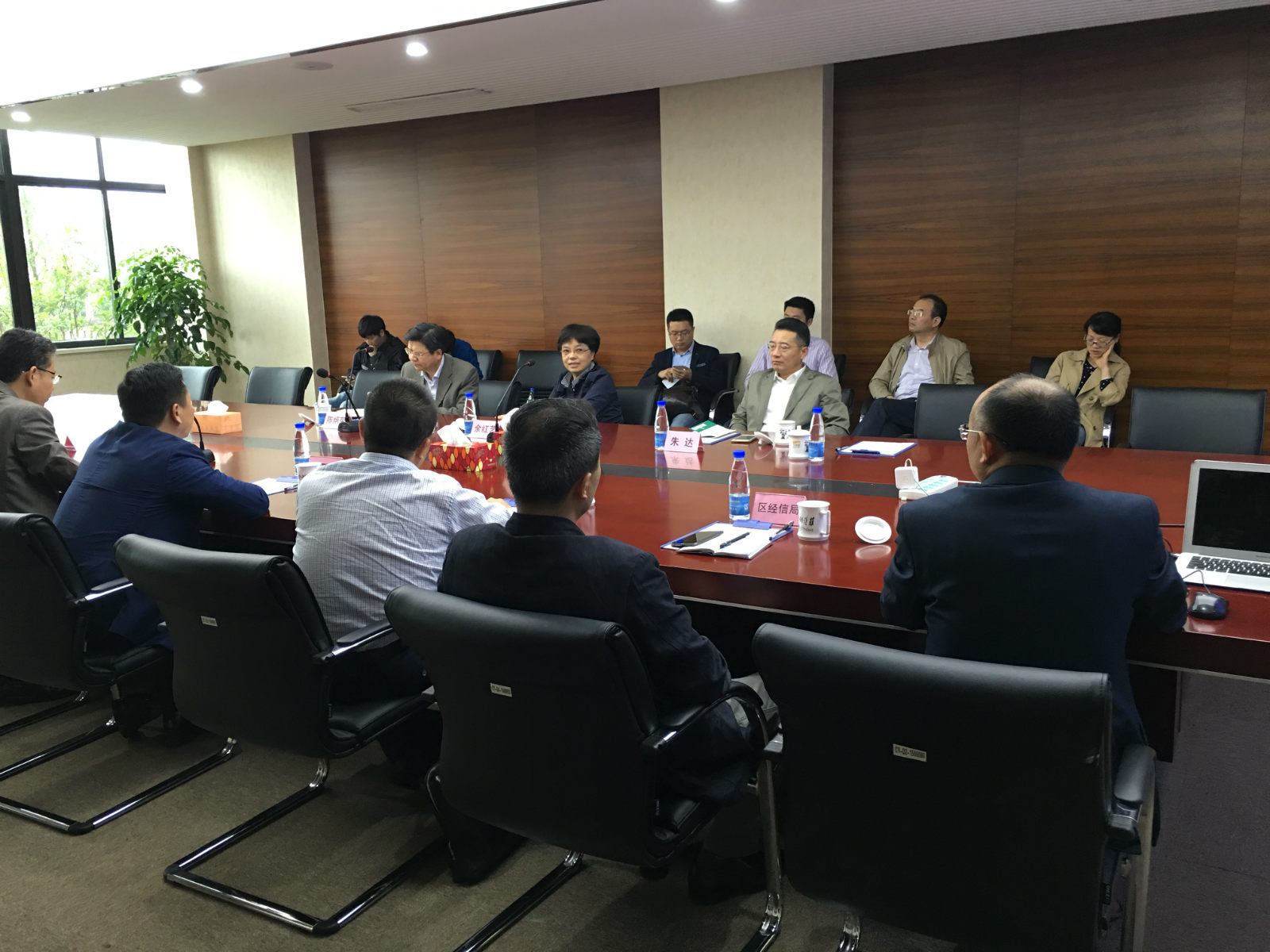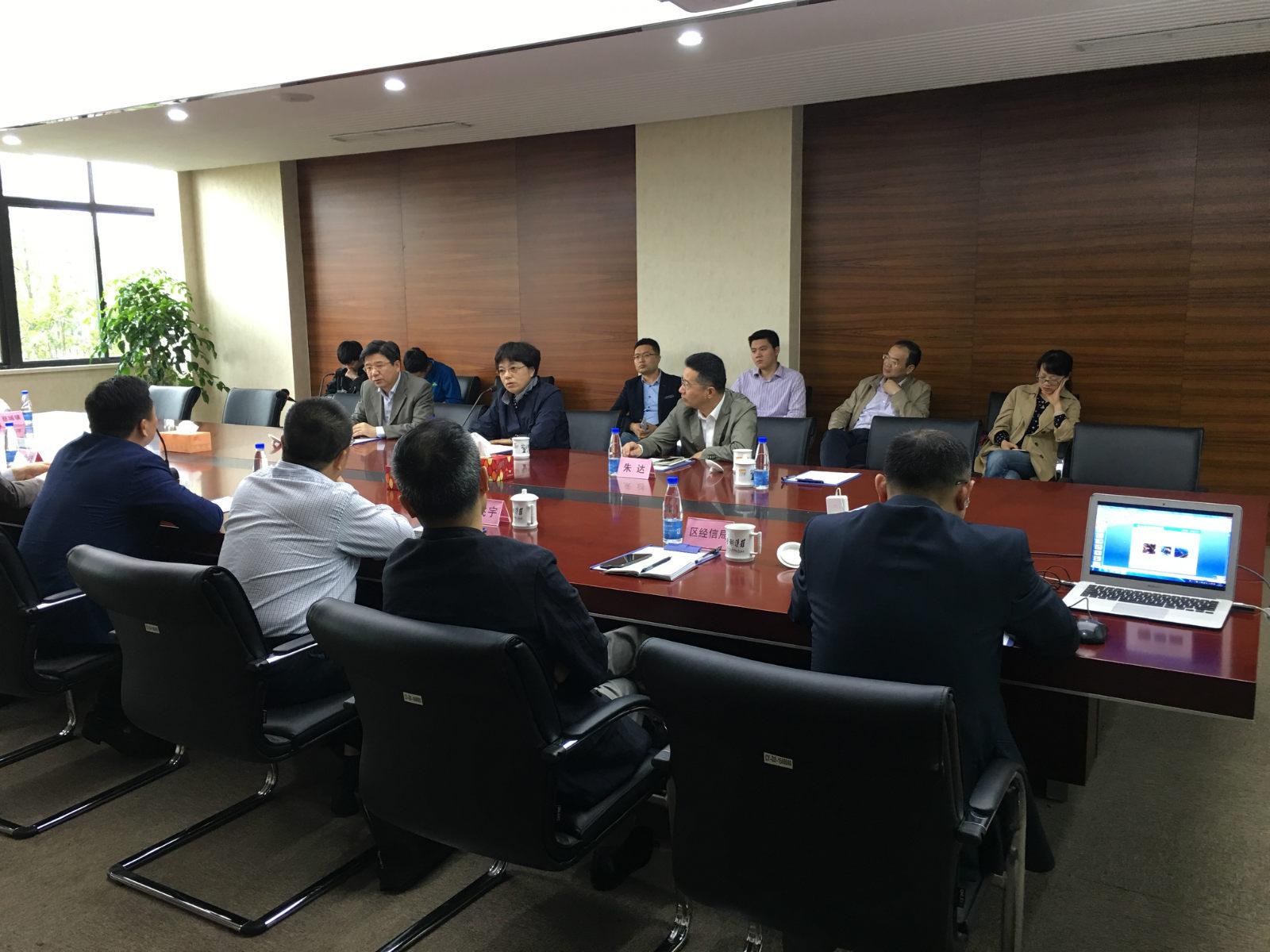 会谈开始,浙江省宁波市委副书记余红艺书记首先表明此次来意,侧重了解引进人才的生活工作情况以及企业大发展现状与前景;然后长阳科技董事长金亚东博士简单介绍了公司发展现状与未来规划,其中包含人才保障与激励,不断完善的人才保障机制与长远人才激励战略得到市区级领导的赞同。