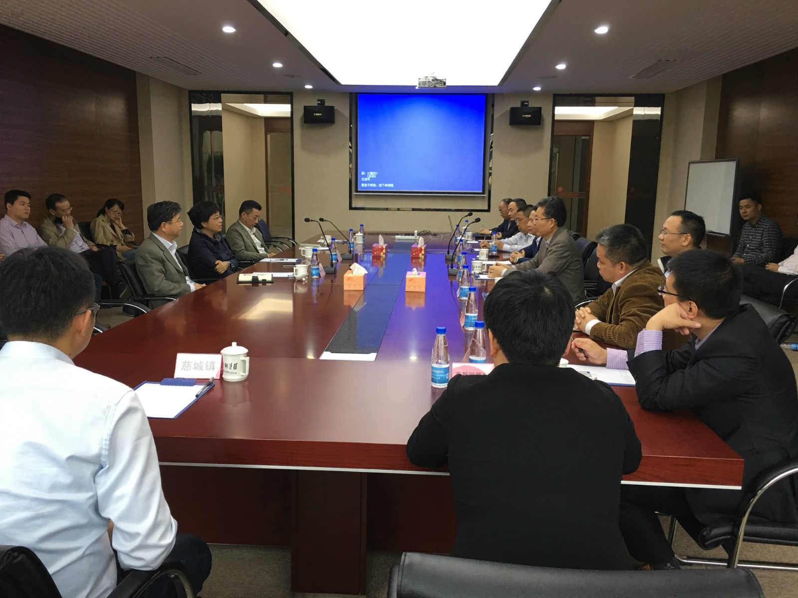 2016年5月16日,浙江省宁波市委副书记余红艺书记与宁波市江北区区委书记华伟书记协同一行领导来司与重点引进人才进行了接洽与座谈,宁波长阳科技董事长金亚东博士,副总裁张克然博士,副总裁杨衷核博士,副总裁杨承翰博士参加了会谈。