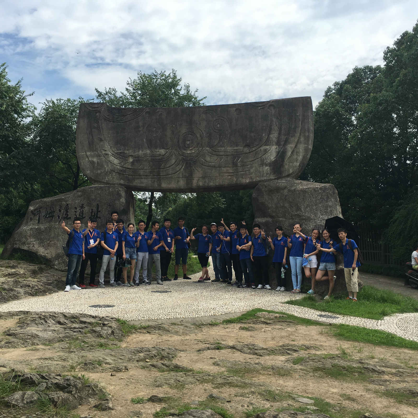 河姆渡遗址(Hemudu Site )是中国晚期旧石器时代遗址,遗址馆内还原了中国晚期的使用工具与生存环境,在感知古代智慧的同时不得不感叹现时代的飞速发展。河姆渡遗址发掘发现的文物遗存数量巨大、种类丰富,为研究距今七八千年前氏族公社繁荣时期人们的生产、生活情况提供了比较全面的材料。它的文化特色主要还在稻作农业、干栏式建筑、纺织和水上交通方面。阳阳们交流着对河姆渡的了解与认识,走过一段历史,述说满心崇敬。