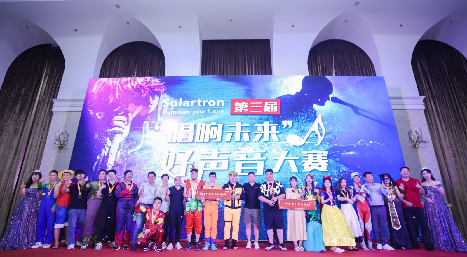 最后,经过观众扫码投票、评委拍灯计分,最终无脸男的《恋爱循环》、美人鱼的《你的答案》、土豪大哥的《千纸鹤》荣获前三甲,公司董事长金总奖励三位每人一台65寸风行液晶电视机及现金红包奖励;其余参赛选手奖励每人一台55寸风行液晶电视机。今晚,他们用歌声唱出激情,用青春唱响未来,这便是长阳人努力进取,敢于争先的拼搏精神。